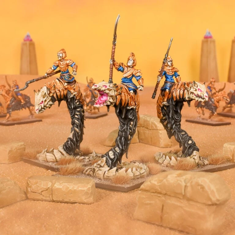 Capturing and riding the great desert sand wyrms was seen as great sport by the Ahmunite nobility and their champions were often bequeathed the finest specimens to reward loyalty and for competition. Even in death, these revenant warriors retain their former skills and wyrms are still captured and used today to carry them to battle.