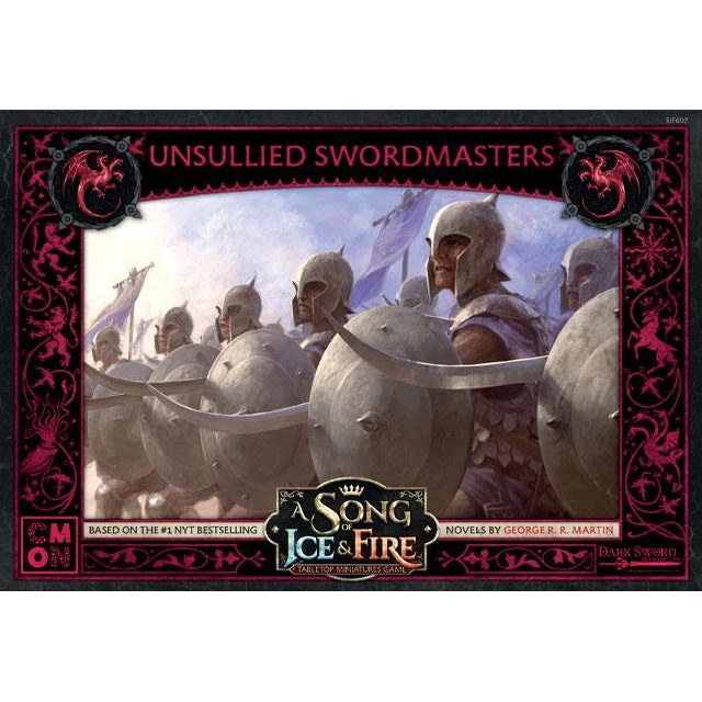The Unsullied Swordsmen unit box for the A Song of Ice and Fire: Tabletop Miniatures Game gives Targaryen players an effective melee unit on the field. Their melee attacks hit at the weak points in enemy armor, granting numerous bonuses when they strike. The Officer Unit Attachment adds to their strengths, trading wounds with the enemy when being attacked, making this unit able to dish out wounds both when attacking and on the defensive.